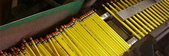 今天的鉛筆仍是以不同比例的石墨粉丶黏土及水為主要成分。另外,為取得更黑的調子和硬度,部分會添加碳黑(CARBON BLACK)。這工作可能需要重複兩次步驟,需要進行三天之久。然後將這牙膏狀的原料放進擠壓機擠出圓細的條狀物(THIN ROD),再切成一般鉛筆長度的筆芯(LEAD)。等到乾燥後放入攝氏1000度或以上的窯爐,燒製成光滑又有適當硬度的成品。
